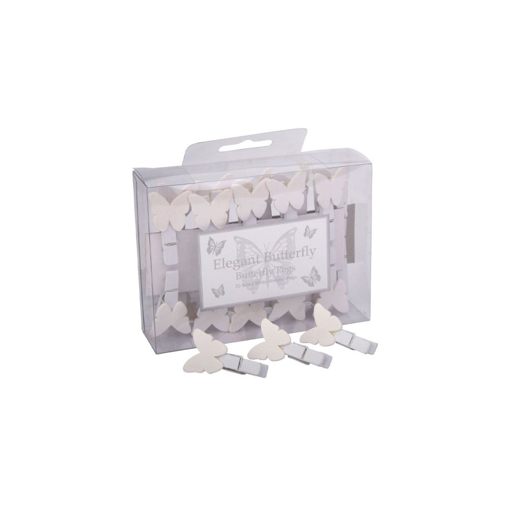 Kolíčky bílé s motýlkem - 20 ks /BP