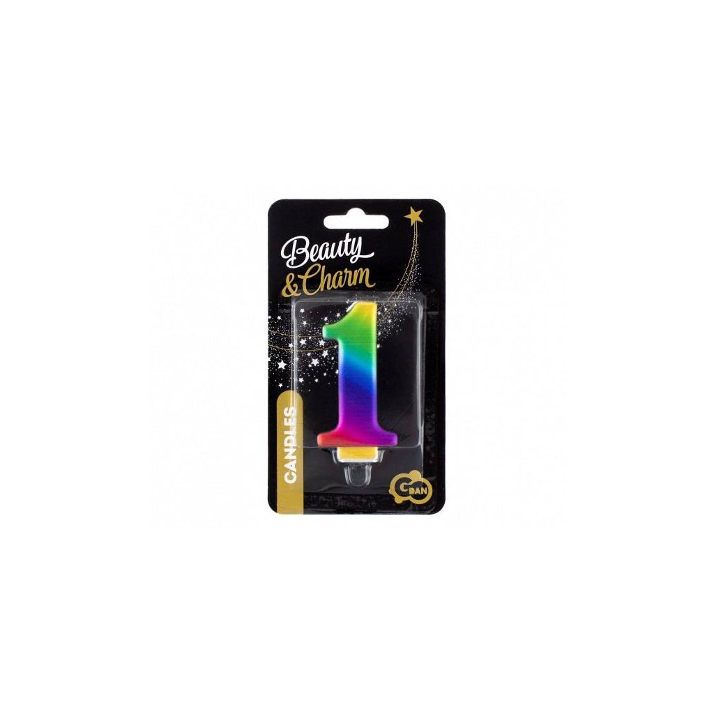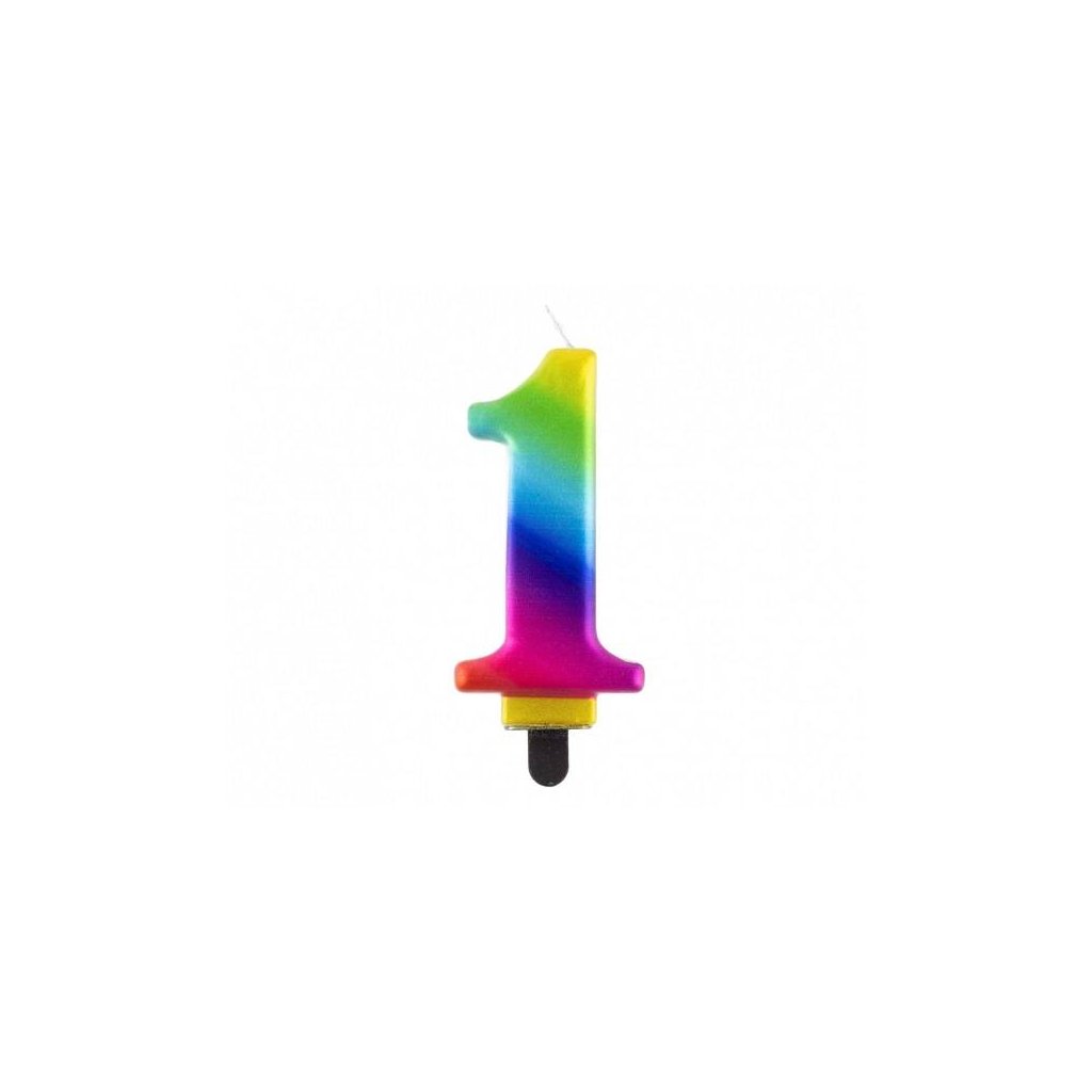 Svíčka - číslice "1" duhová 8cm 1 ks