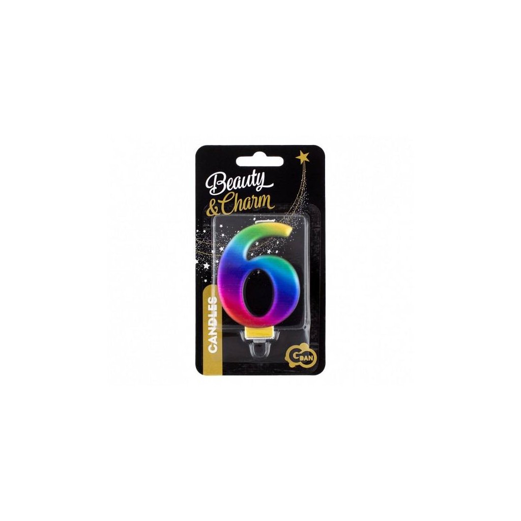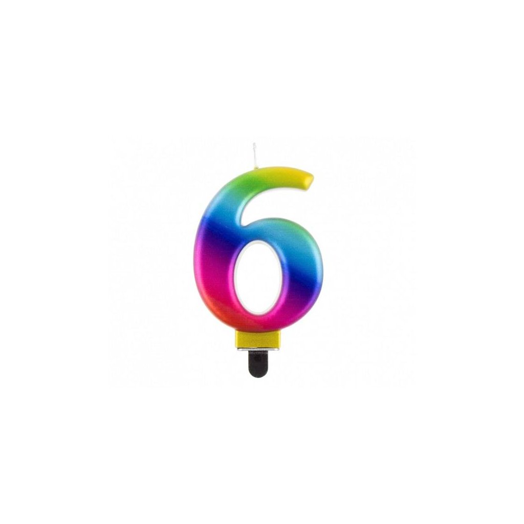 Svíčka - číslice "6" duhová 8cm 1 ks