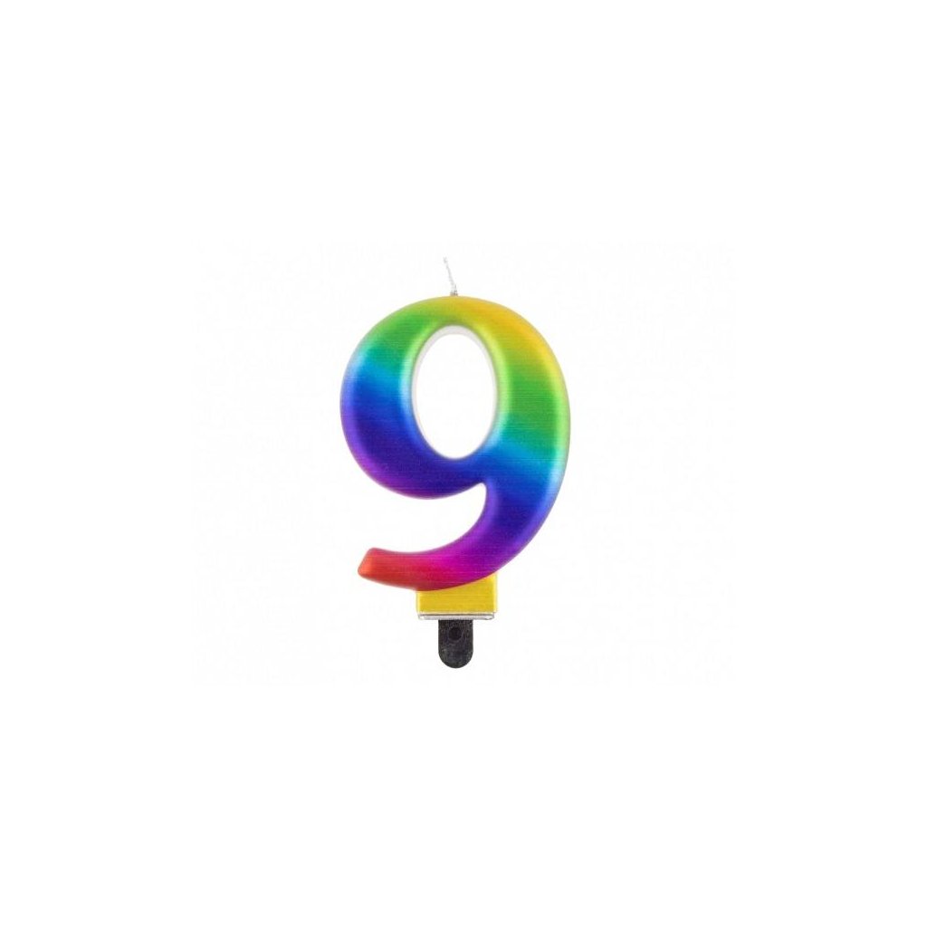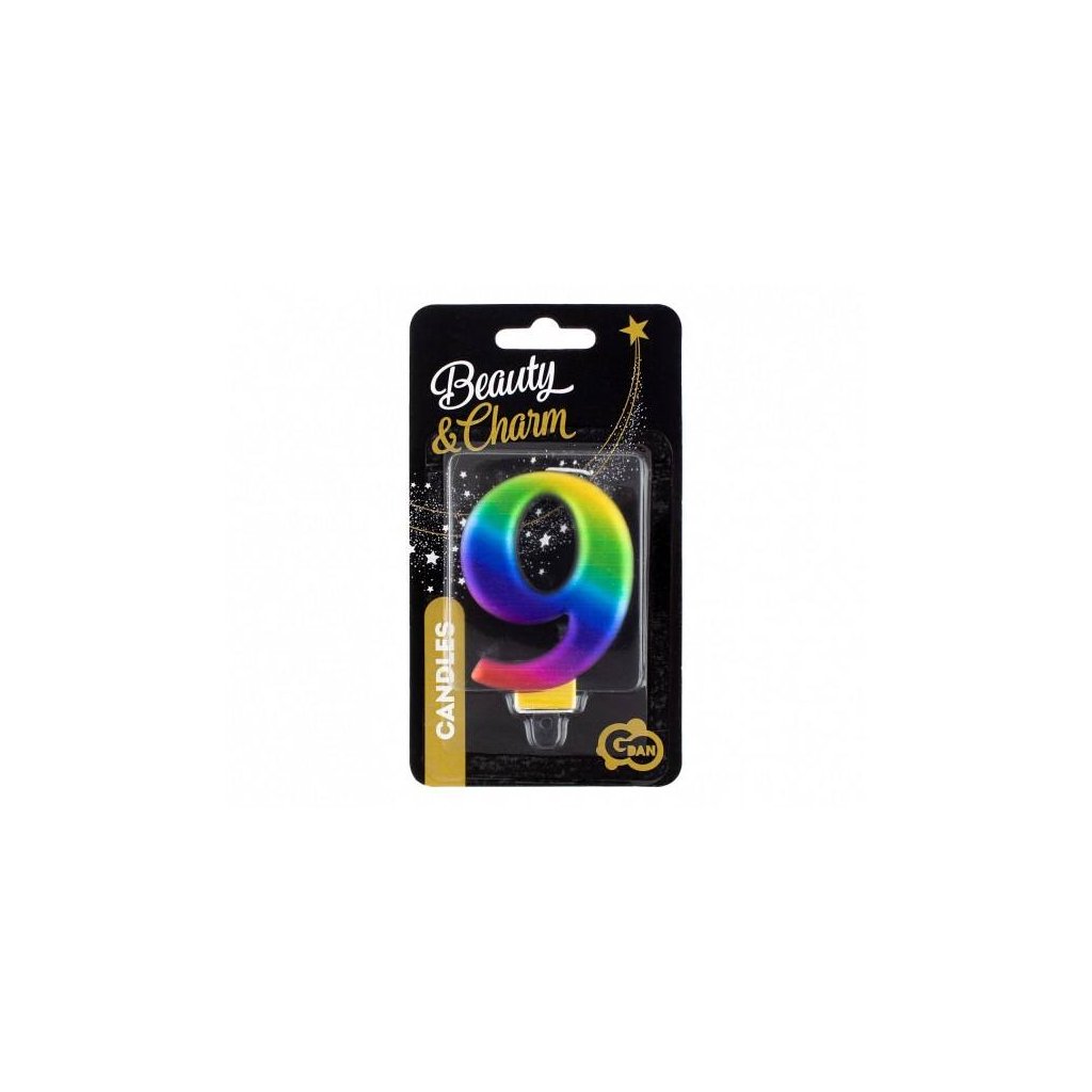 Svíčka - číslice "9" duhová 8cm 1 ks