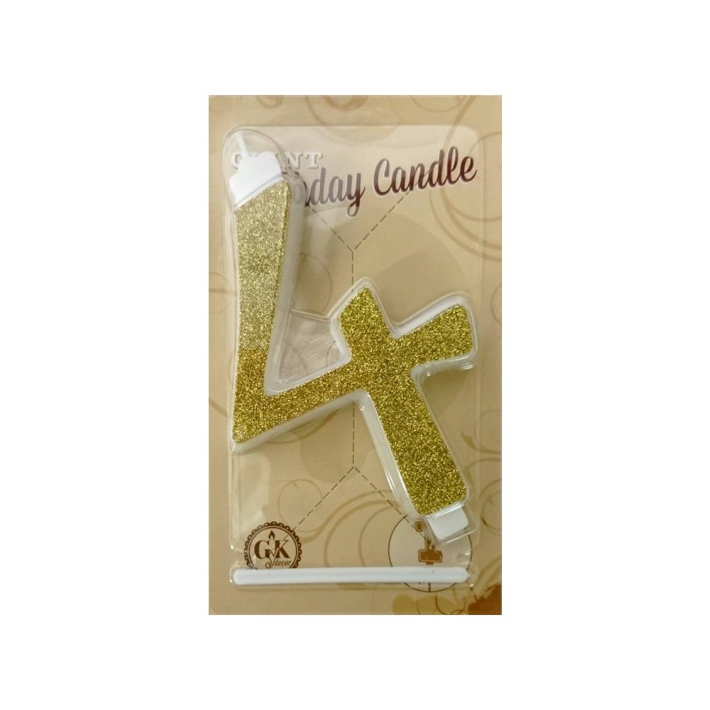Svíčka velká zlatá číslo 4 ♡