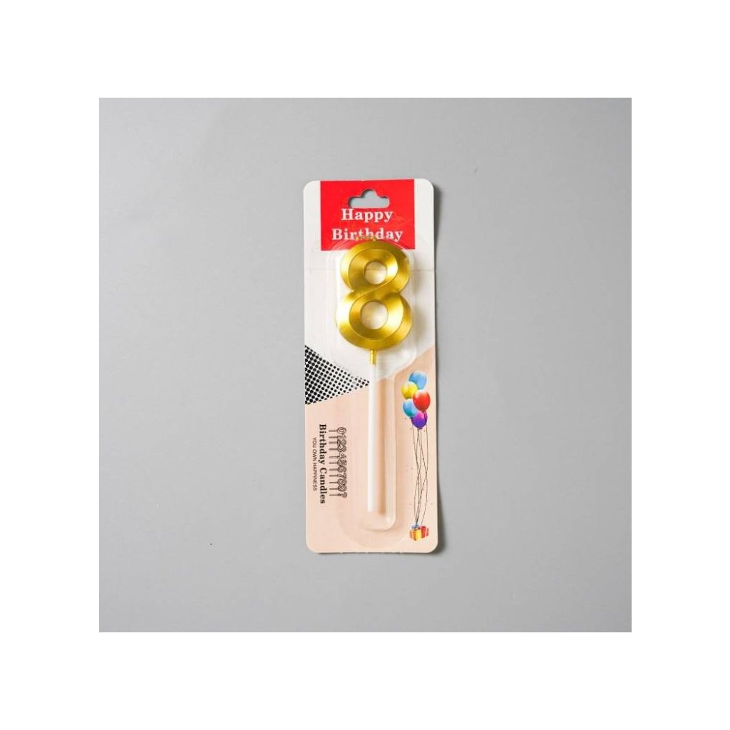Svíčka zlatá číslo 8 ♡
