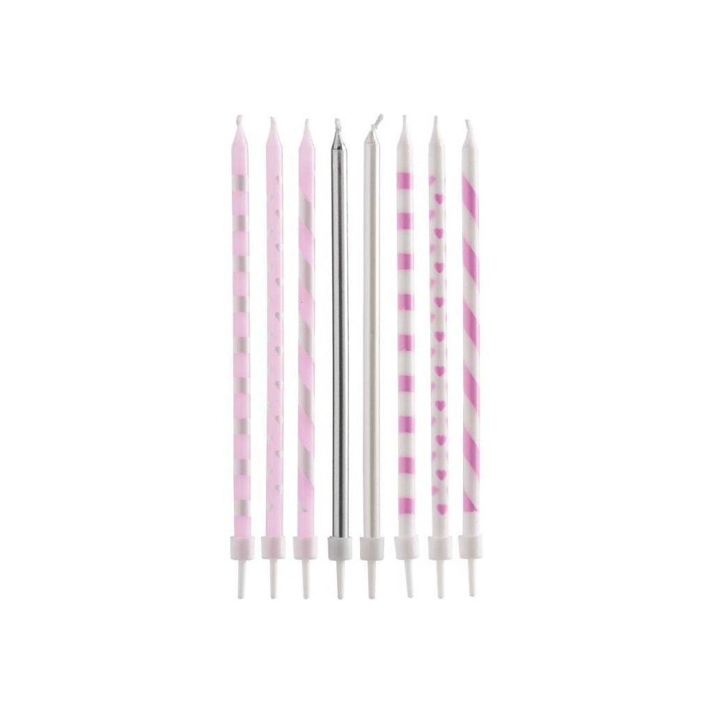 Svíčky dlouhé růžové, - Dekora | Cukrářské potřeby