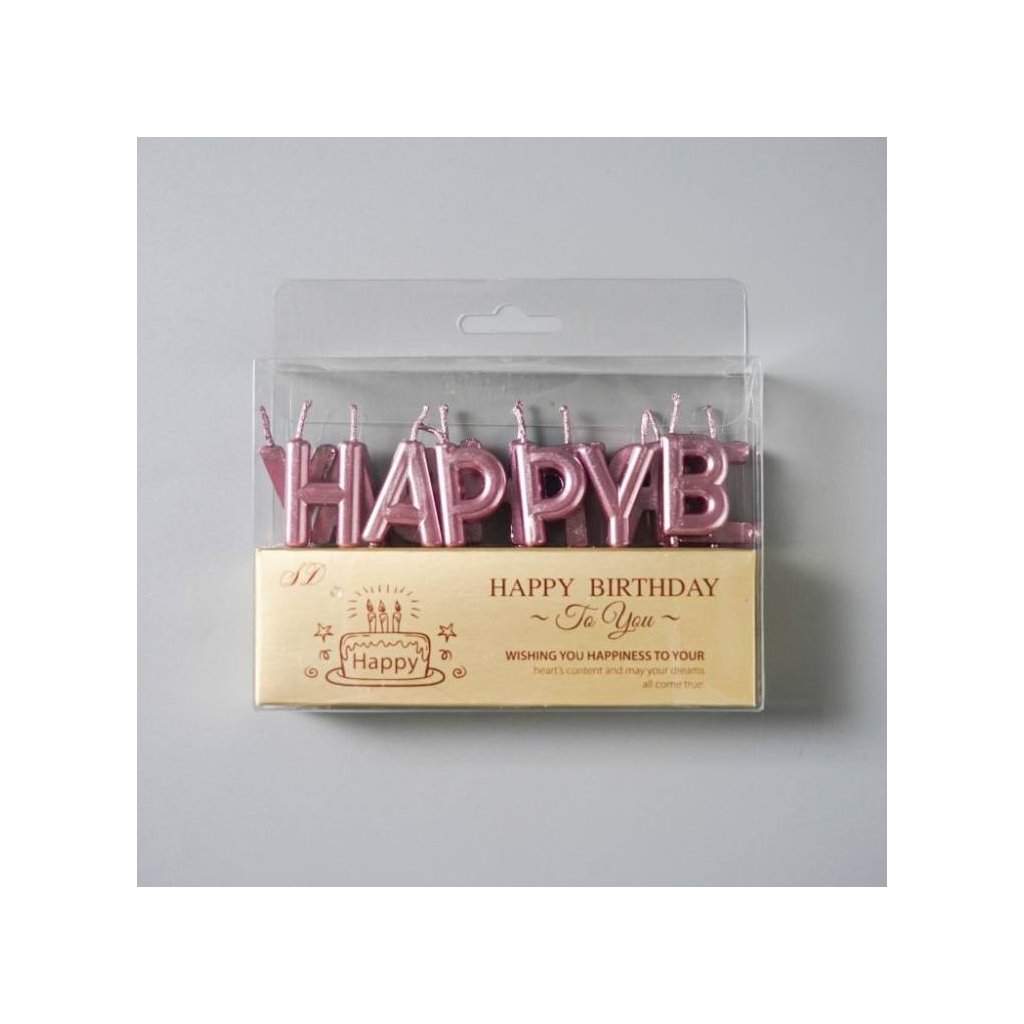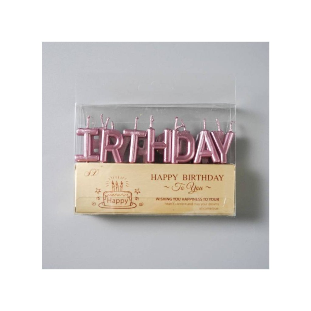 Narozeninové svíčky na dort ve tvaru nápisu Happy Birthday. Výška písmen: 2,5 cmDoplňkové parametry
