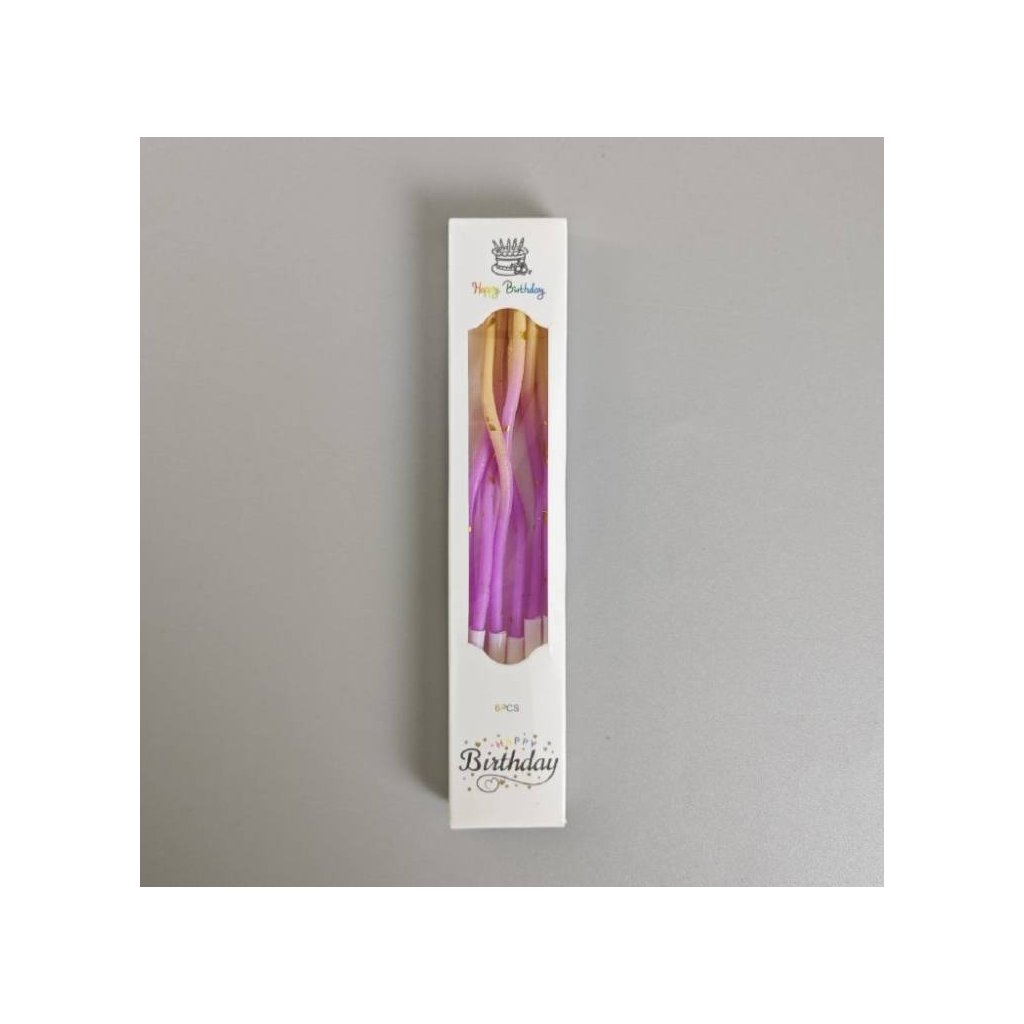 Svíčky spirálové fialovo-žluté se zlatým zdobením (6 ks) ♡