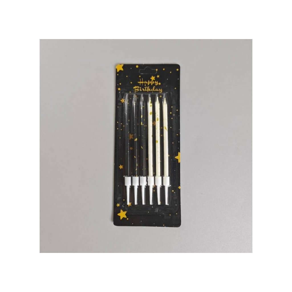 Svíčky Star černé a bílé se zlatým zdobením (6 ks) ♡