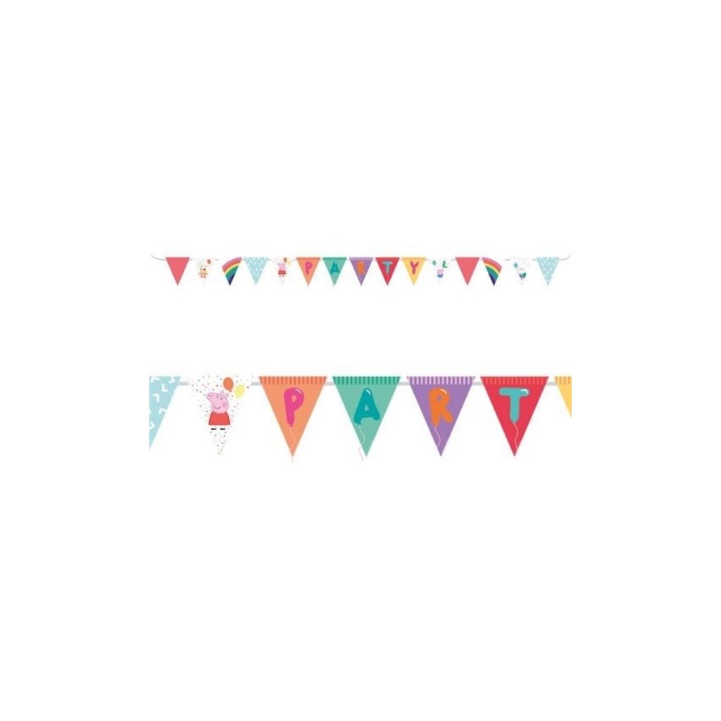 Vlaječková girlanda v motivu Prasátko Peppa a nápisem Party, je perfektní dekorace na tématickou party Prasátko Peppa nebo narozeninovou oslavu. Rozměr: 330 cm. Balení: 1 ks.Doplňkové parametry
