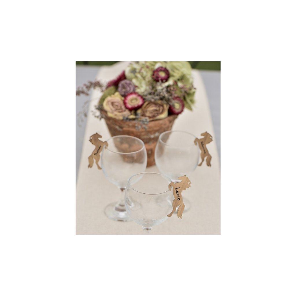 Dřevěná dekorace ve tvaru koně, poslouží jak rozlišovač skleniček ale i jako krásná závěsná dekorace, v balení naleznete také jutový provázek. Praktický dekorační prvek na vaší oslavě narozenin, tematické party nebo svatební hostině. Barva: hnědá. Rozměr: 7 x 4.2 cm Balení: 6 ks.Doplňkové parametry