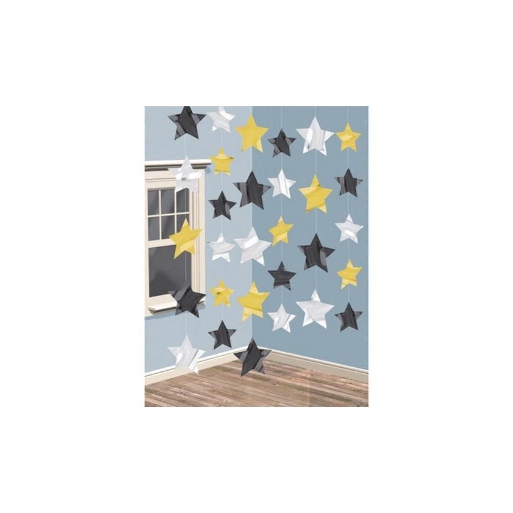 Závěsné dekorace hvězdy – Hollywood styl, 6 ks /BP