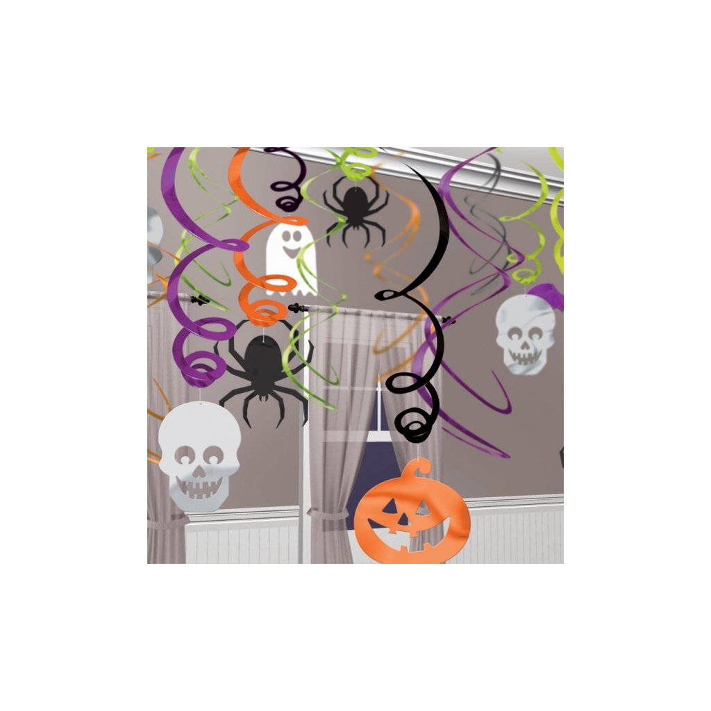 Závěsné spirály Halloween, které místnosti dodají patřičnou atmosféru. Skvělé na dětský halloween. Vhodné do kombinace s dekorací na zeď, ubrousky kelímky apod. zboží. Rozměr: 61 cm. Počet: 30 ks.Doplňkové parametry