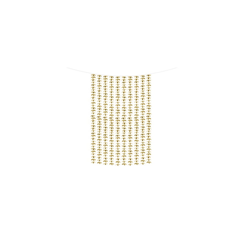 Party závěs (girlanda) k dotvoření dekorace či fotokoutku - Květiny ze zlaté metalické fólie. Ideální doplněk pro narozeninové oslavy a svatby. Má mnoho způsobů využití – hodí se např. jako pozadí do foto koutku, k dekoraci candy baru, na ozdobu dveří. Rozměry: 100 x 210 cm Balení 1 ksDoplňkové parametry