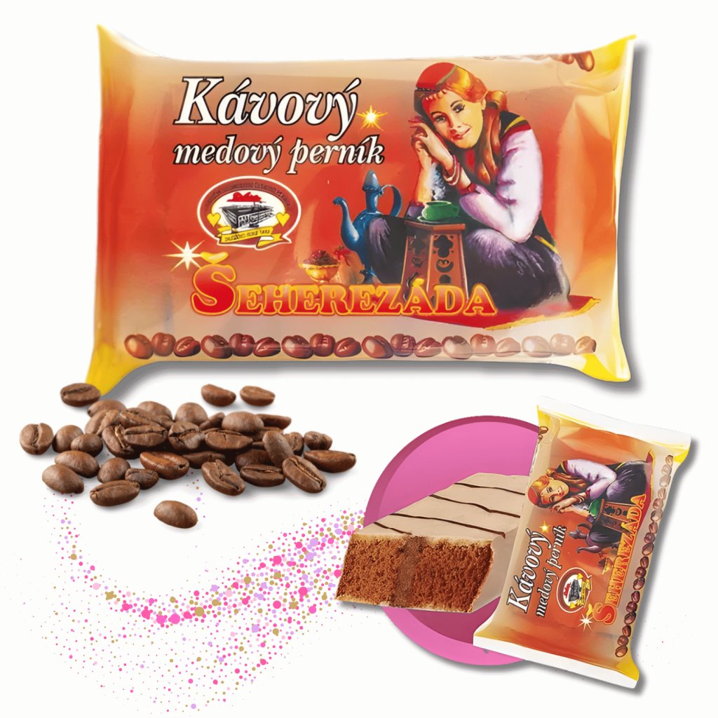 - PŠENIČNÁ MOUKA, cukrářská poleva světlá 28%(cukr, plně ztužený rostlinný tuk palmojádrový a palmový, sušená syrovátka, sušené MLÉKO odtučněné, emulgátor SÓJOVÝ lecitin, aroma), cukr, med 5 %, džem ovocný (ovocné dřeně, cukr, glukózový sirup, želírující látka pektin, kyselina citronová, aroma), voda, vejce, plně ztužený rostlinný tuk palmový, sojová mouka, sušené MLÉKO, káva pražená, cukrářská poleva tmavá (cukr, plně ztužený rostlinný tuk-palmojádrový a palmový, kakaový prášek se sníženým obsahem tuku 16%, emulgátor sojový lecitin, aroma), kypřící látky hydrogenuhličitan sodný a hydrogenuhličitan amonný, perníkové koření
