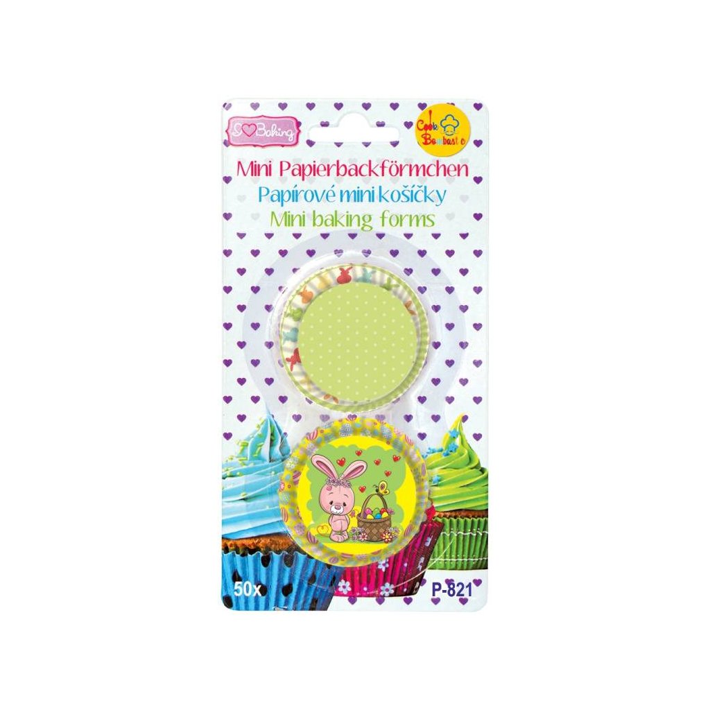 Papírové košičky na pralinky, ideální na přípravu čokoládových pralinek a vhodné pro styk s potravinami. Průměr dna: 3,2 cm Výška: 2 cm 50 kusů v balení (25 ks se zajíčky a 25 ks se zajíčkem a vajíčky).Doplňkové parametry