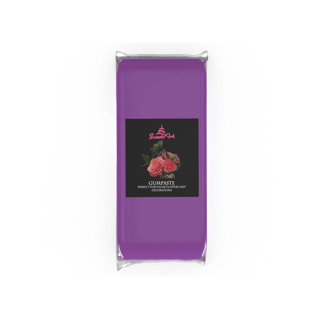Speciální hmota, která je určena zejména k modelaci cukrových květin a výrobě složitých ozdob. Je bílá a velmi pružná. Květiny z této hmoty můžeme tvarovat buď přímo pomocí vykrajovátek a silikonových žilkovačů, nebo zvolit náročnější tvarovaní pomocí floristických drátků, pásek, ztenčovacích podložek a vykrajovátek. Je dobré mít po ruce i škrob, aby hmota předčasně nelepila například při vykrajování a žilkování. Hotové části květin necháme zapíchnuté v polystyrenu vytvrdnout a potom je pomocí floristické pásky svazujeme do potřebných tvarů. Hmotu lze barvit běžnými gelovými barvami.Složení, co obsahuje produkt - SweetArt gum pasta vanilková Violet 1 kg pro cukrářské účely: