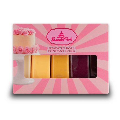SweetArt potahovací a modelovací hmoty vanilkové bílá, krémová, červená a bordó (4x100 g) ♡