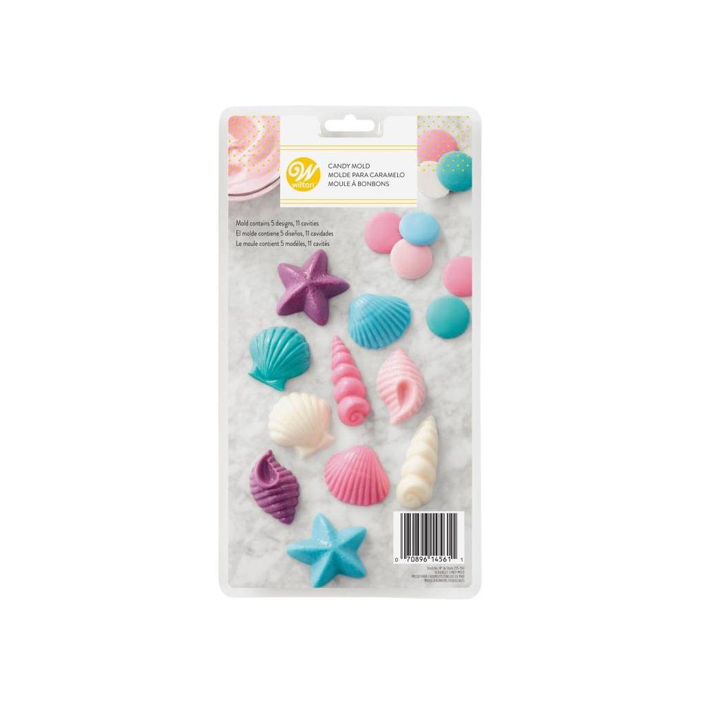 Forma na odlévání čokoládových bonbonů nebo i na nepečené cukroví ve tvaru mušlí. Výška tvaru: 3,5 - 5,5 cm. Forma obsahuje celkem 11 tvarů. Materiál: plast Výroba čokoládových bonbonů je velice jednoduchá. Při výrobě plných čokolád nalijeme do formy čokoládovou hmotu, povrch srovnáme cukrář.kartou a necháme ztuhnout. Pokud chceme vyrábět plněné bonbonů, musíme nejdříve vyrobit tzv. skořápku a to představuje nanesení čokolády na boky tvarovné formy, dáme do mrazáku podchladit a pokud je vrstva tenčí, naneseme vrstvu druhou. Do vytvořené skořepiny vkládáme požadovanou náplň - marcipán, alkoholové náplně, oříškové nebo karamelové. Záleží jen na naší fantazii a chuti. Při plnění skořepiny nezapomeneme na ponechání prostoru na zavíčkování bonbonu - tj zalití náplně další vrstvičkou čokolády. Formu opět vkládáme do chladu a po vytuhnutí vyklepneme.Doplňkové parametry