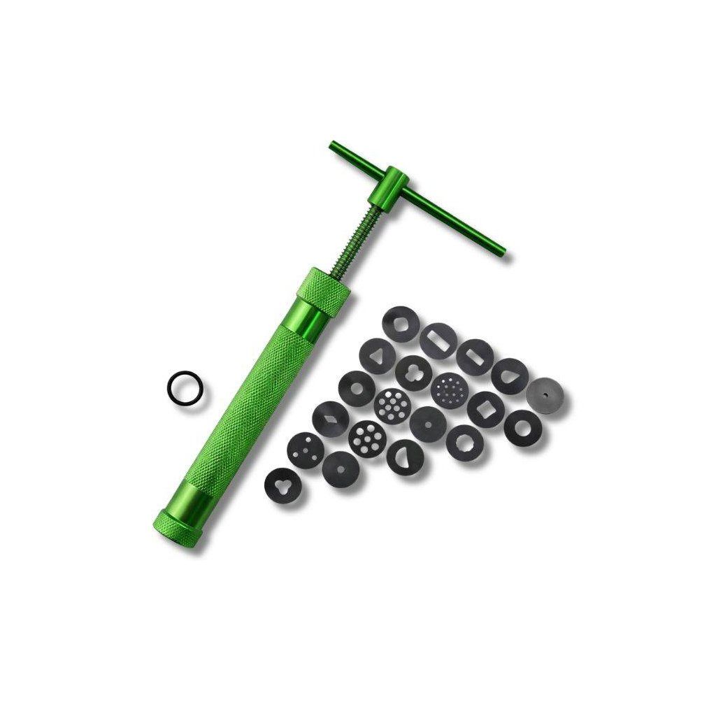 Kvalitní kovový extruder je nepostradatelným pomocníkem při zdobení dortů, cupcakes i dalších dezertů. Díky robustní kovové konstrukci je odolný, pevný a zároveň snadno ovladatelný. Součástí balení je 20 různých nástavců, které umožňují vytvářet širokou škálu tvarů – od tenkých provázků a vlasů postaviček až po ozdobné vzory a struktury.