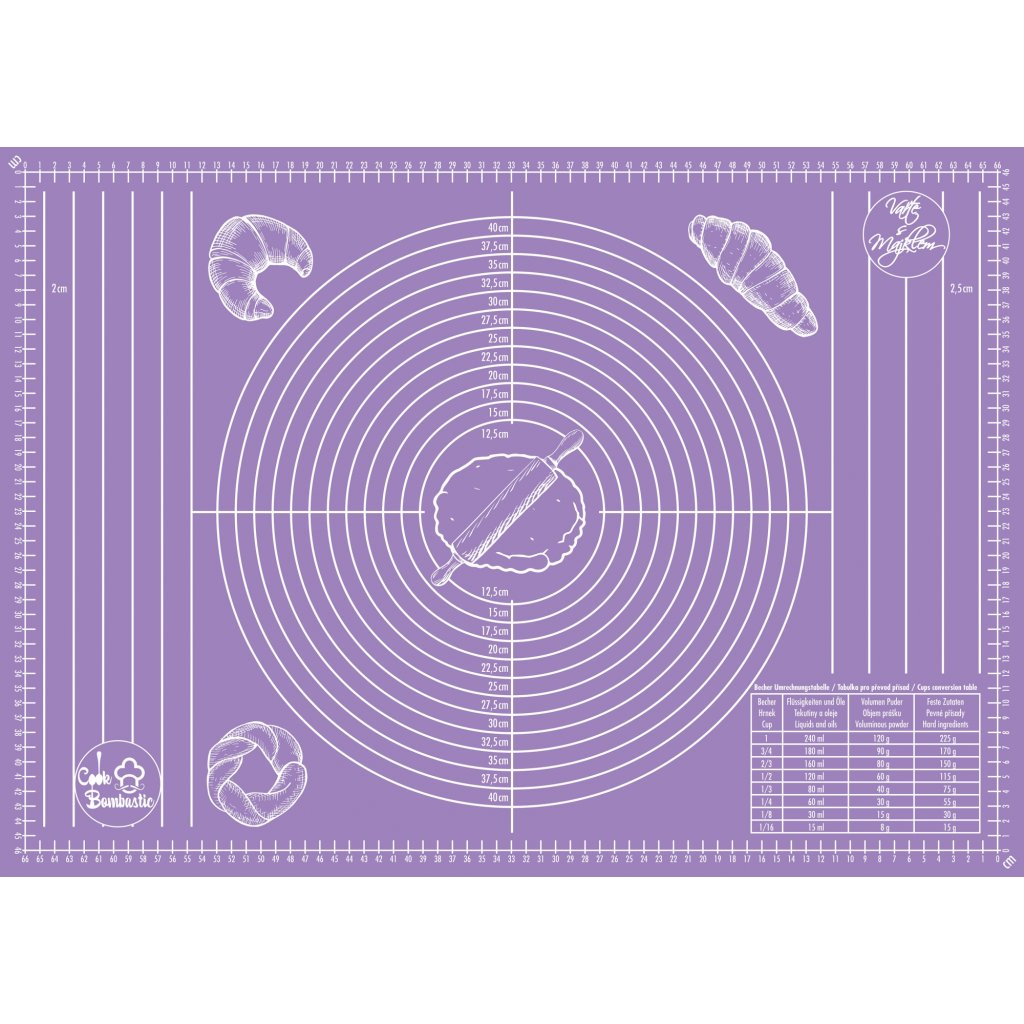 Tato silikonová podložka je všestranný pomocník při práci v kuchyni. Je ideální pro vyvalování a tvarování těsta na oblíbené jablečné záviny, linecké koláče, cukroví nebo sušenky, které nemusíte tolik podsypávat moukou. Je opatřena praktickými měřítky a stupnicemi pro dobrou a rychlou orientaci v měření a krájení. Podložka je vyrobena z kvalitního pružného silikonu.