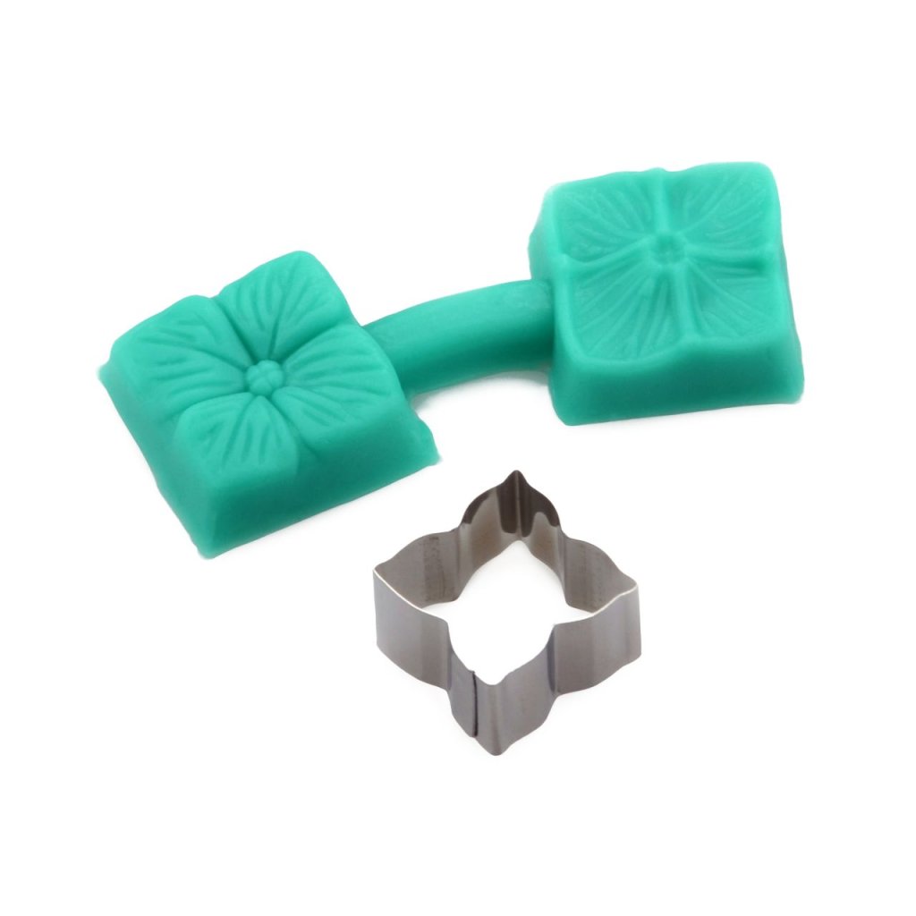 Profesionální silikonové razítko na výrobu květin s modelovací hmotou. Dodávka včetně vhodného řezače z pocínovaného plechu. Průměr: cca. 3,5 cm. Vhodné také na rolovací polevu, marcipán nebo modelování čokolády.