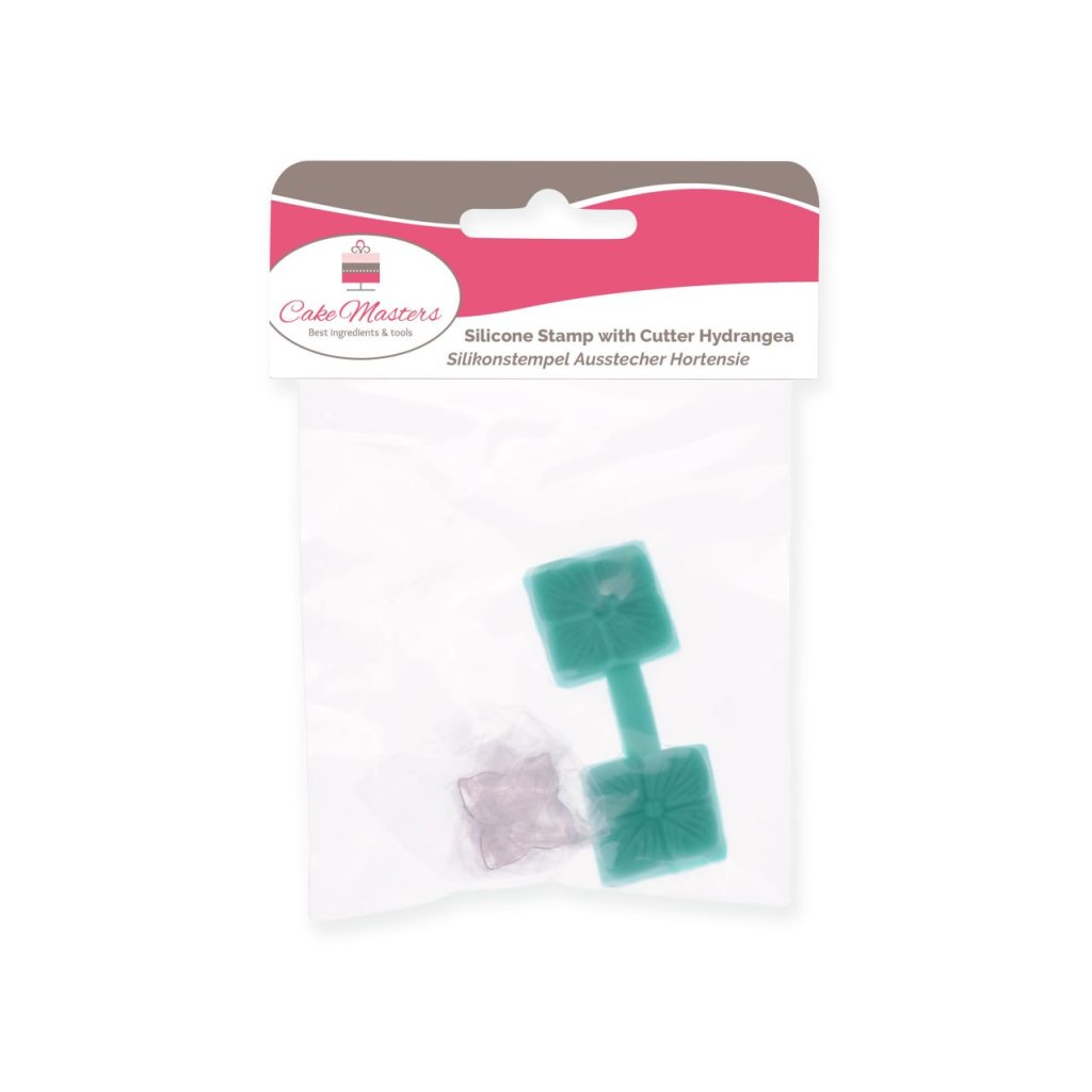 Sada silikonové otiskovací formičky a nerezového vykrajovátka pro výrobu květu hortenzie