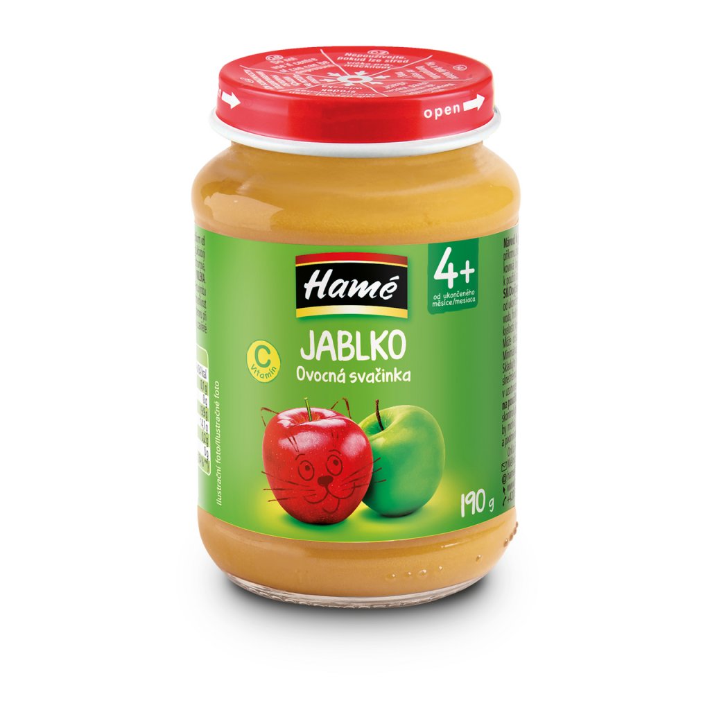 - Složení: jablečná dřeň (60 % hm.), voda, cukr, fruktózový sirup (fruktóza, dextróza, maltóza), zahušťovadlo: kukuřičný modifikovaný škrob, regulátor kyselosti: kyselina citronová, antioxidant: kyselina askorbová.