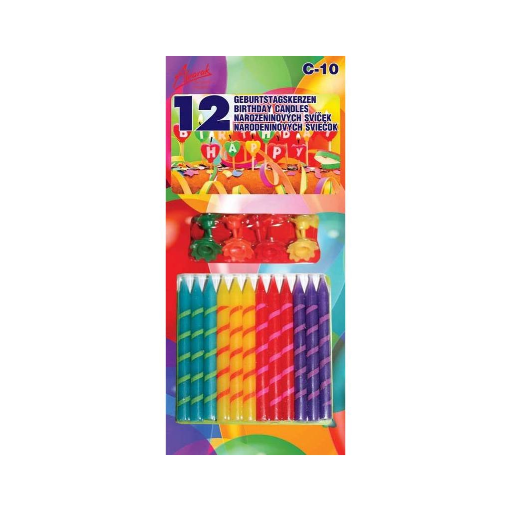 12ks narozeninových svíček se stojánky barevné - Alvarak | Cukrářské potřeby