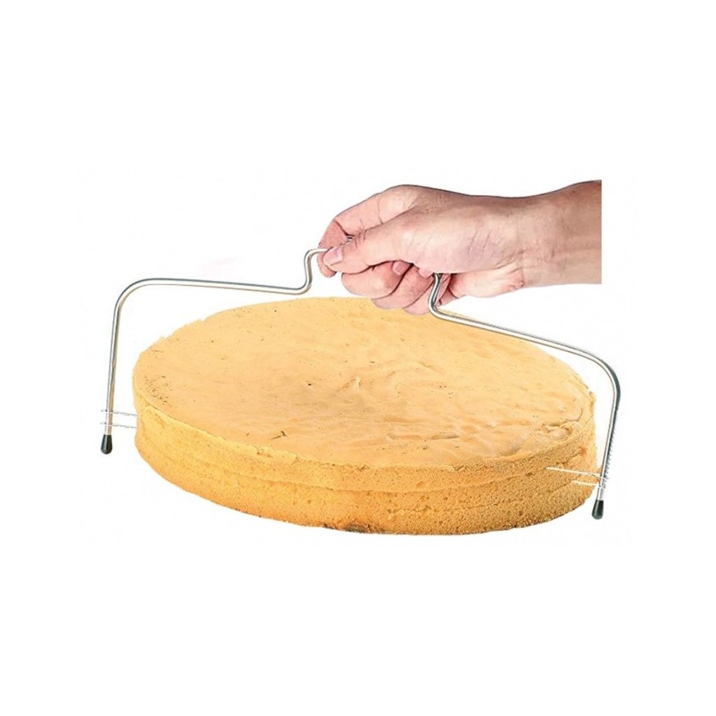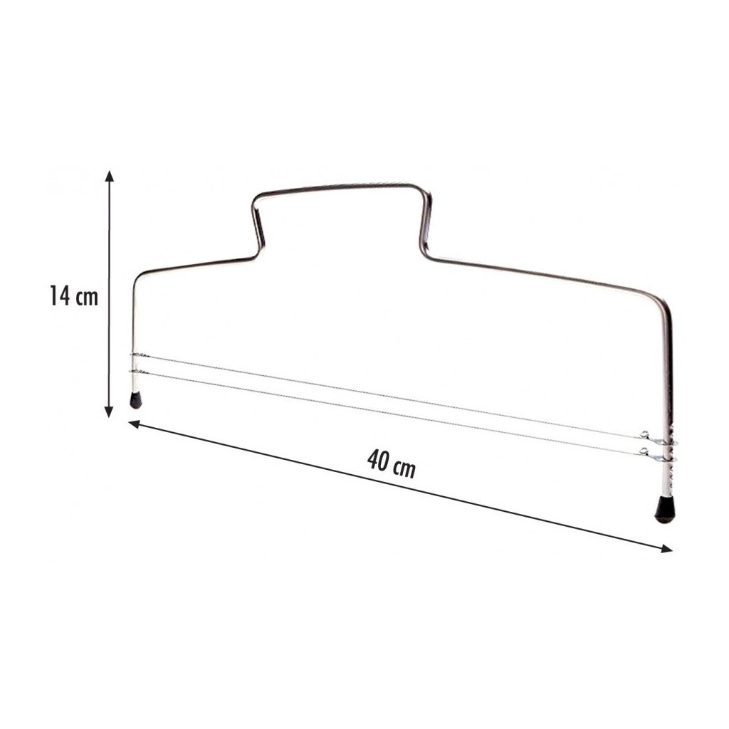 Se strunovým kráječem budete mít pláty dortového korpusu vždy stejně vysoké. Snadno se s ním krájí. Můžete si na něm nastavit 10 různých výšek. Navíc je s ním krájení bezpečnější než s nožem a nehrozí pořezání. Po použití ho stačí umýt teplou vodou a mycím prostředkem nebo ho dát do myčky. Rozměr: 40 x 14 cmDoplňkové parametry