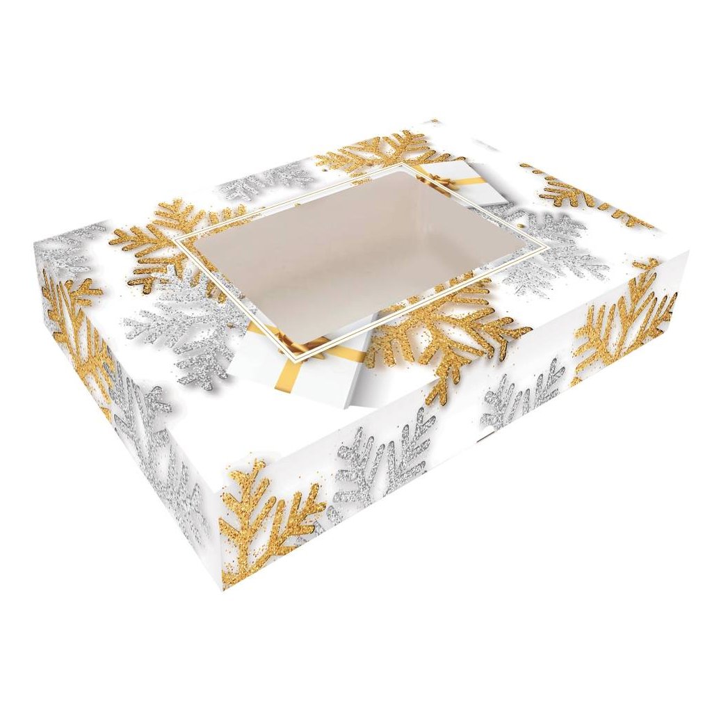 Alvarak vánoční krabice na cukroví Bílá s vločkami 37 x 22,5 x 5 cm ♡