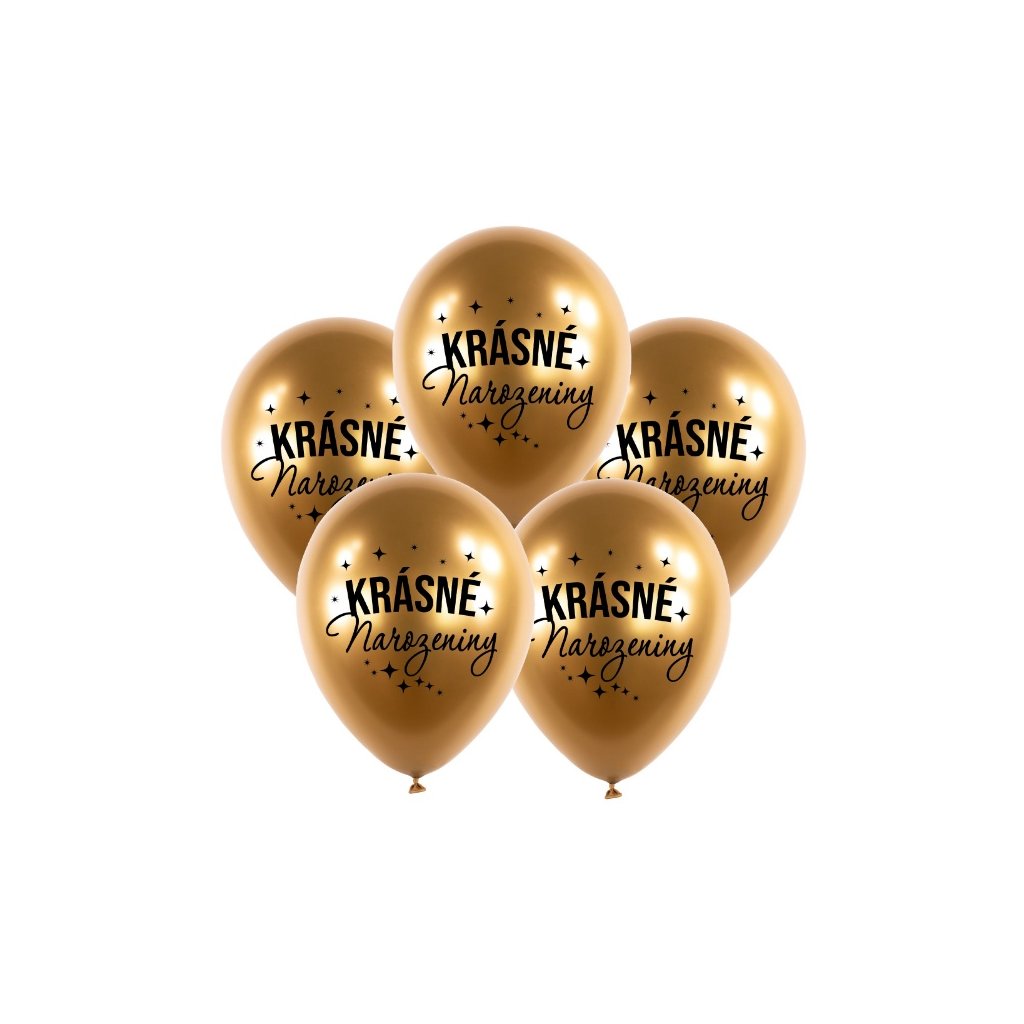 Balonkový buket Chrome Krásné narozeniny, Zlatý - 5 ks /BP
