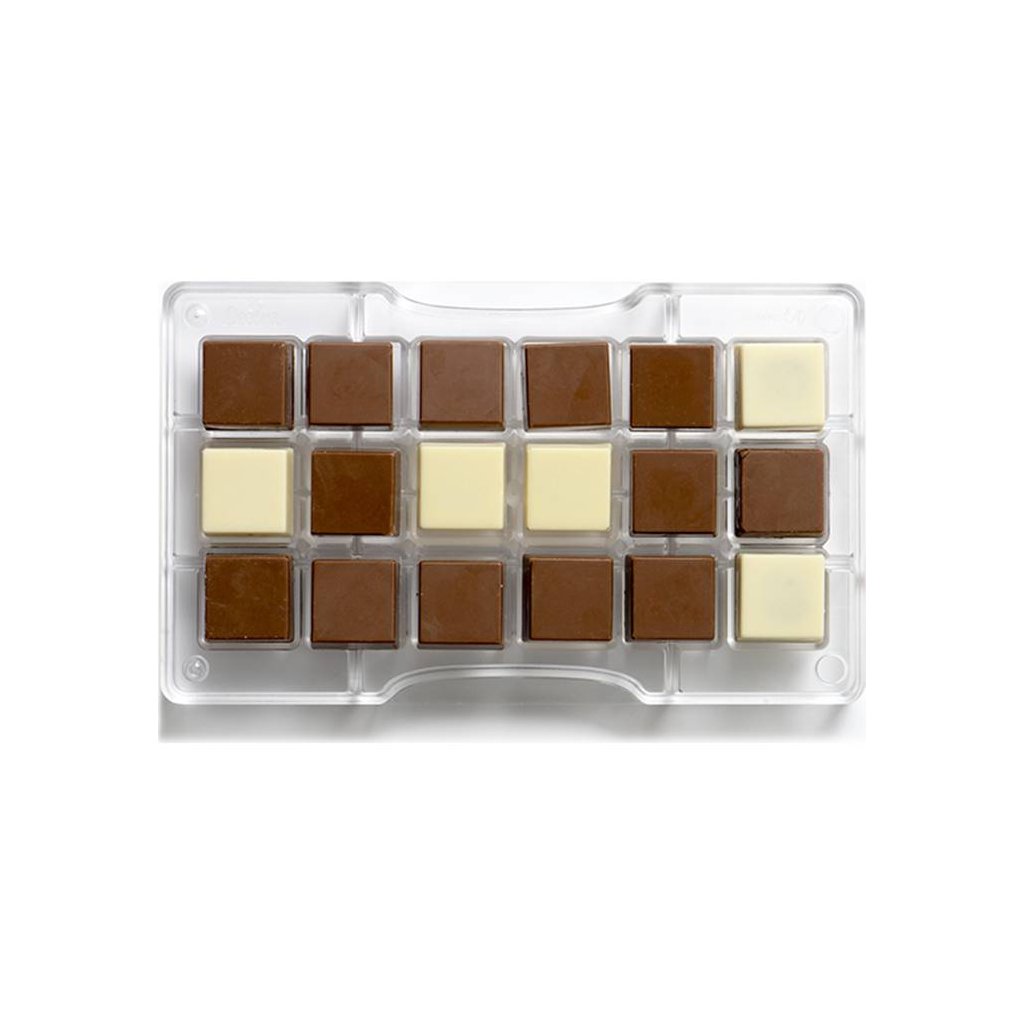 Čokoládová forma čtverce 20 x 12 x 2 cm pro snadné a rychlé vytváření čokoládových dekorací či pralinek.Doplňkové parametry