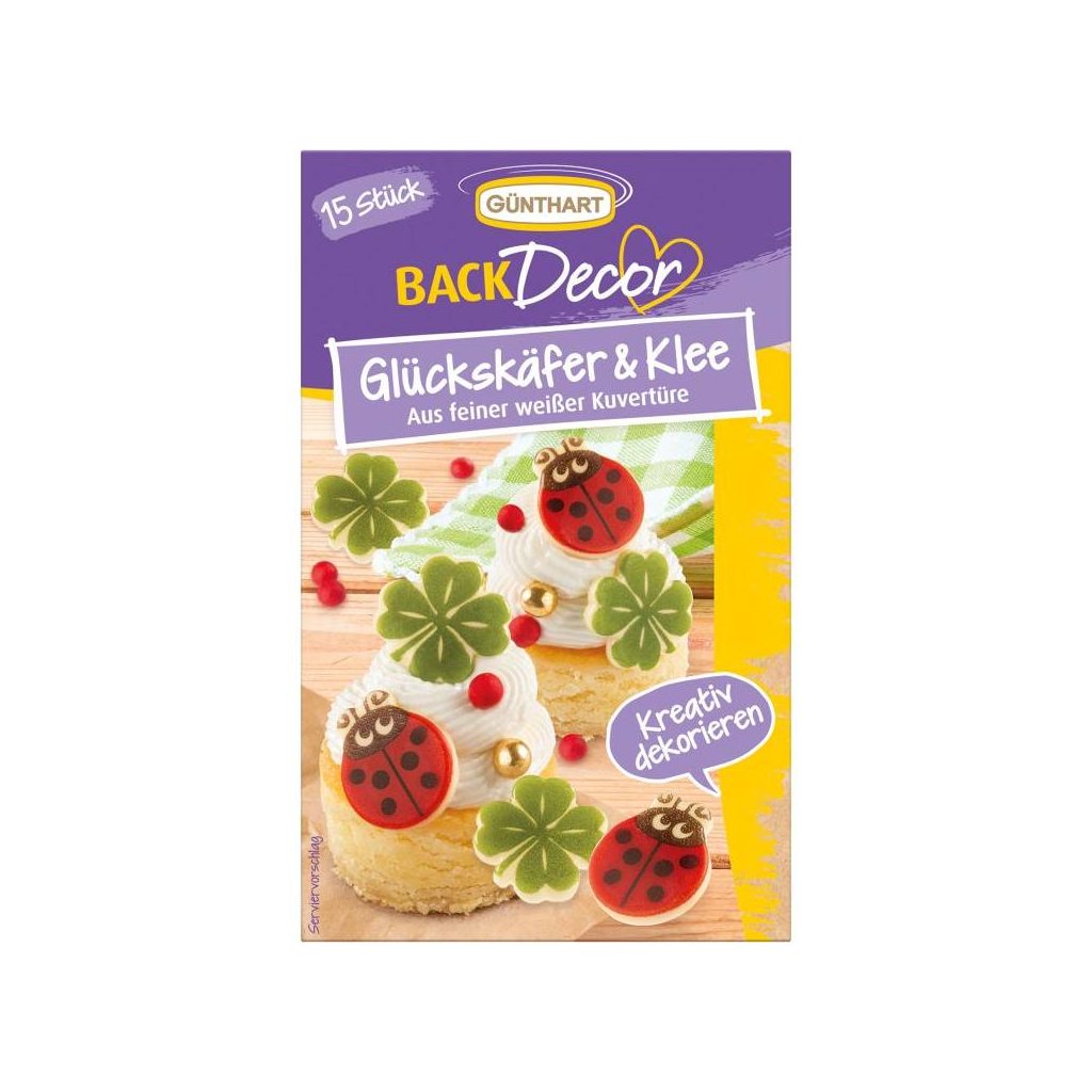 Čokoládové dekorace beruška a čtyřlístek. V balení 15 ks.Doplňkové parametry