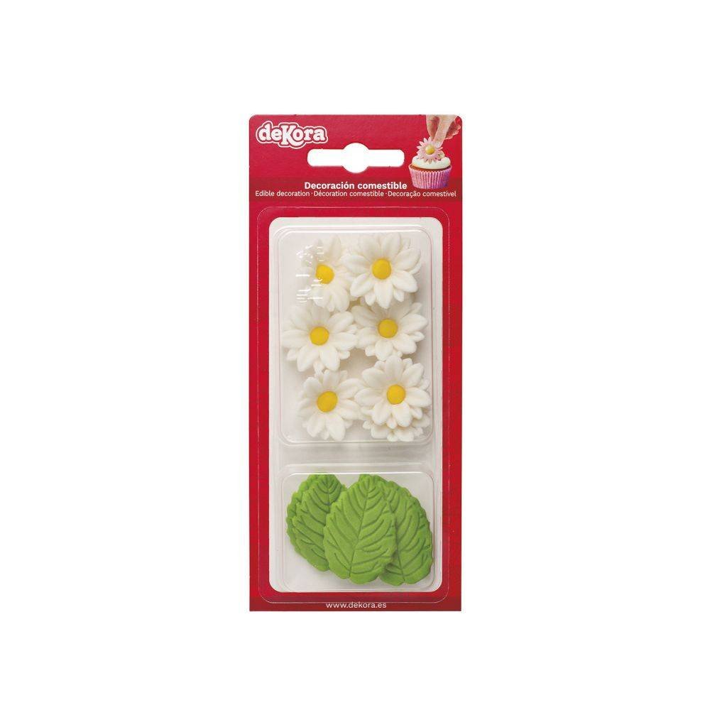 Curková dekorace 7 bilých kopretin a 5 listů - Dekora