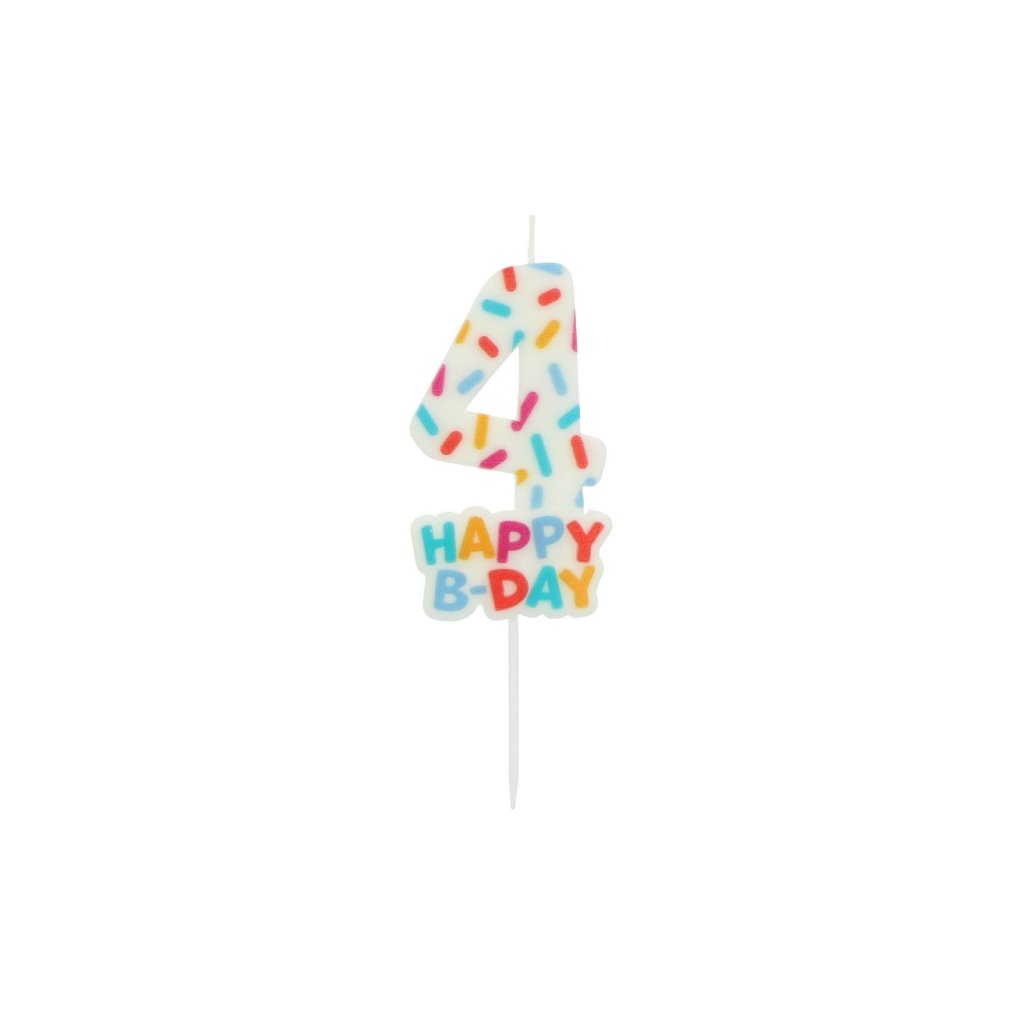 Dortová svíčka číslo 4 - Happy B-day 7 cm /BP