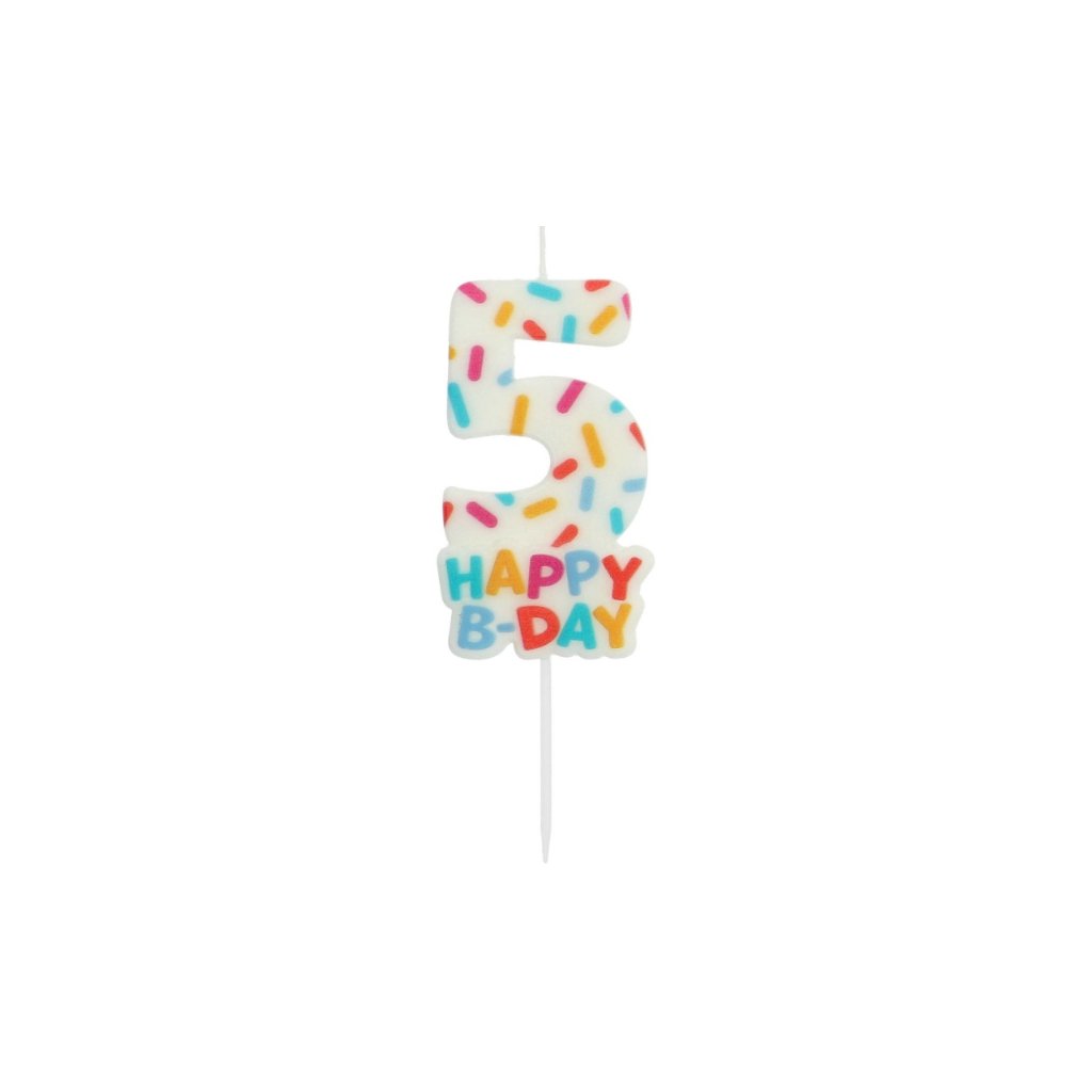 Dortová svíčka číslo 5 - Happy B-day 7 cm /BP