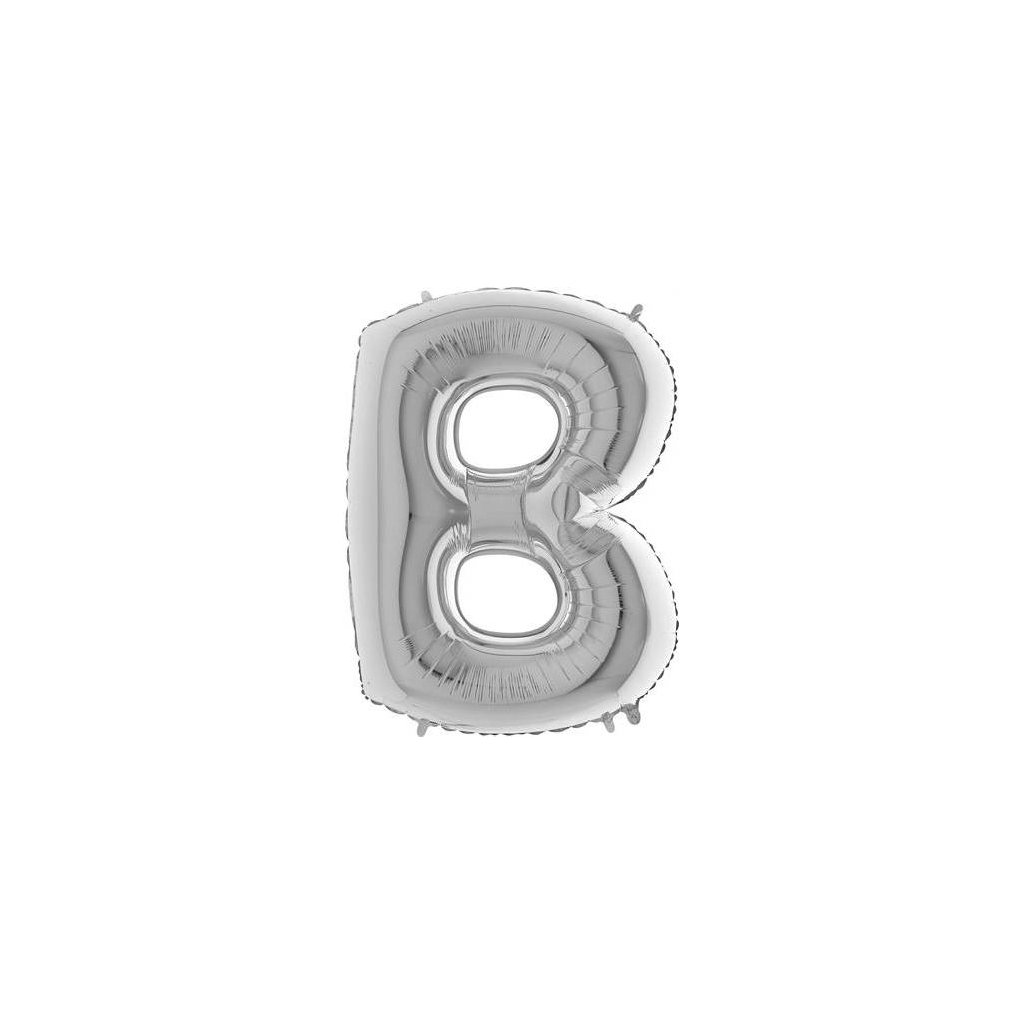 Stříbrný balónek písmeno B. Balónek je vyrobený z pevné fólie.Doplňkové parametry