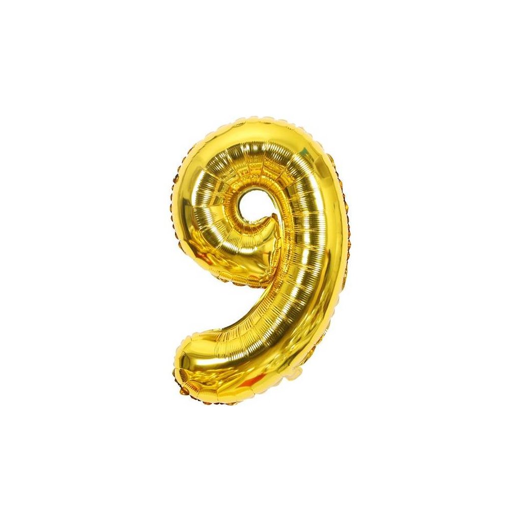 Fóliový balónek číslo 9, zlatý, 102 cm.Doplňkové parametry
