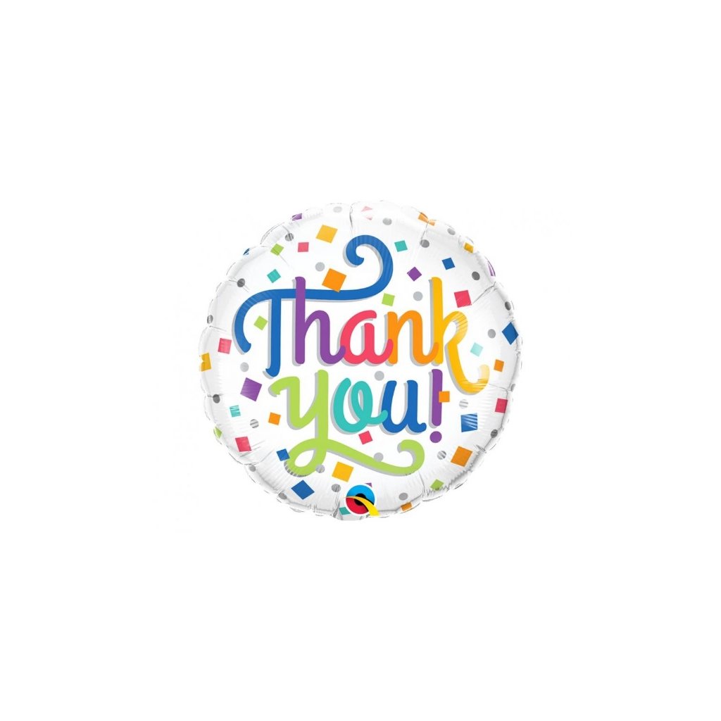Foliový balonek kulatý s barevným nápisem Thank you, ozdobený slavnostním motivem konfet. Tento balónek je perfektní dekorační doplněk na oslavu narozenin nebo jako výzdoba party. Vhodný i na jakoukoliv příležitost kdy chcete vyjádřit své poděkování. Balonek lze nafouknout vzduchem i heliem. Při nafouknutí heliem vydrží plně nafouklý cca 3 až 5 dní, poté se začne pomalu vyfukovat. Balonek je vyroben z recyklovatelných materiálů a je 100% recyklovatelný. Rozměry: 45 cm. Balení: 1 ks.Doplňkové parametry