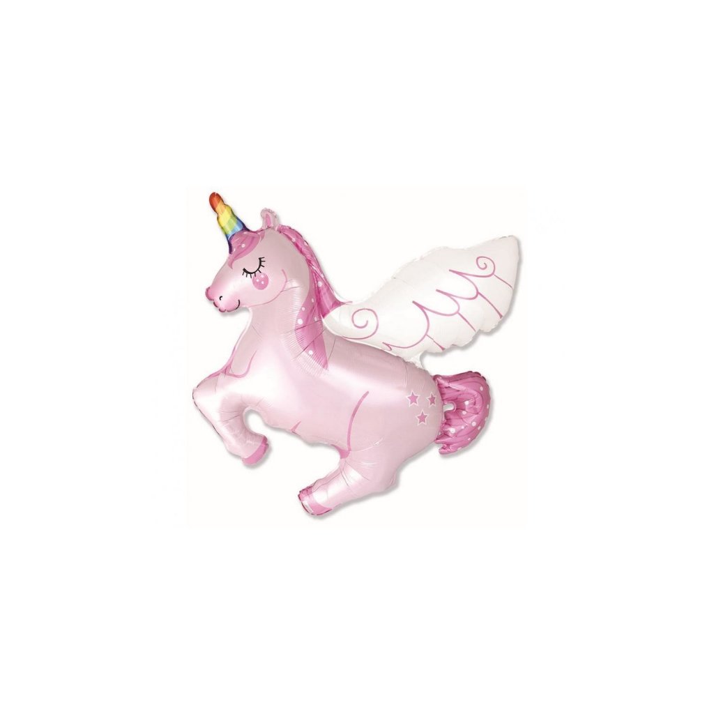 Foliový balonek létající jednorožec růžový - duhový roh - 110 cm /BP