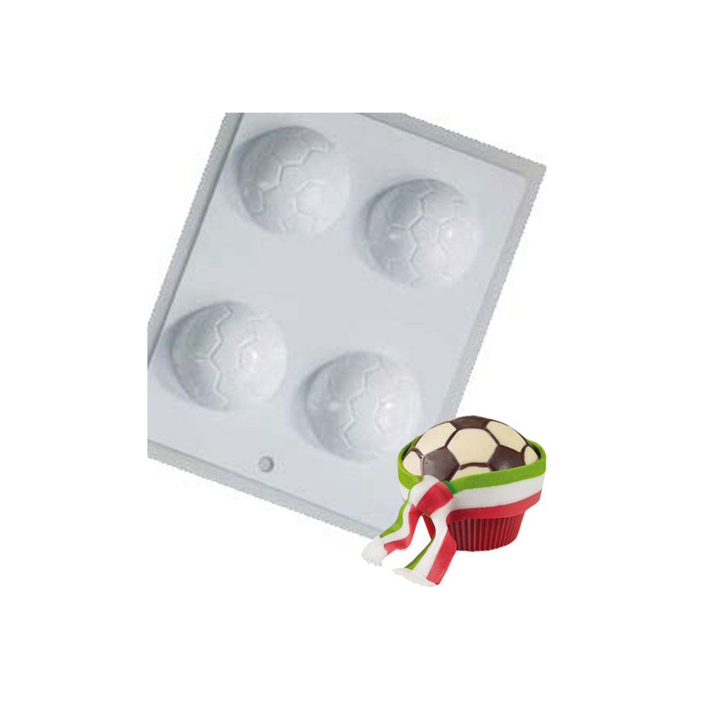Forma na čokoládu ve tvaru fotbalového míče k výrobě dekorací, ideální na cupcakes nebo zákusky.