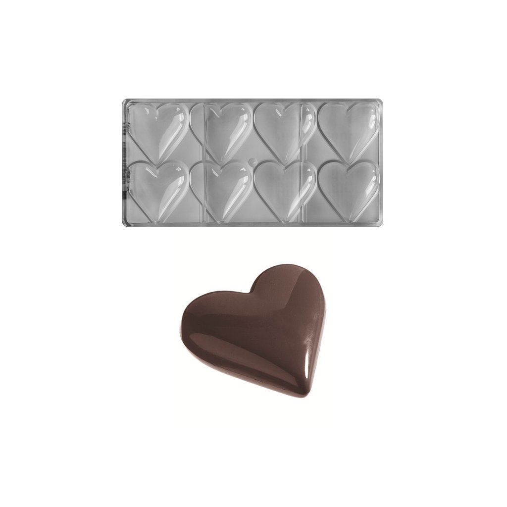 Cukrářská pevná polykarbonátová forma na výrobu čokoládových srdíček.