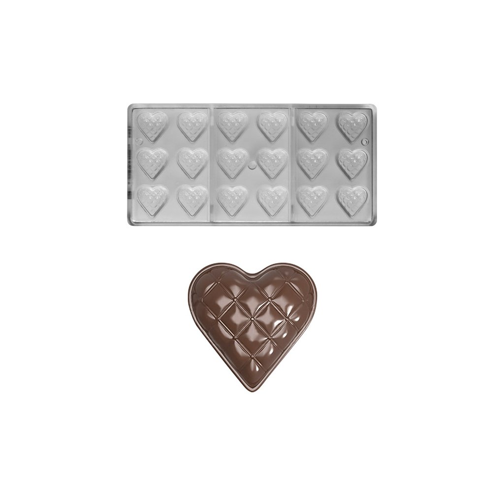 Cukrářská pevná polykarbonátová forma na výrobu čokoládových srdíček.