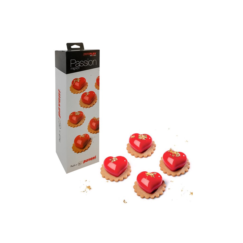 Silikonová forma PAVOFLEX ve tvaru srdíček, vhodná na pečení, i na zamražování. Vynikající na zákusky a výrobu semifred. Používá se i ve studené kuchyni např.: na masové aspiky.