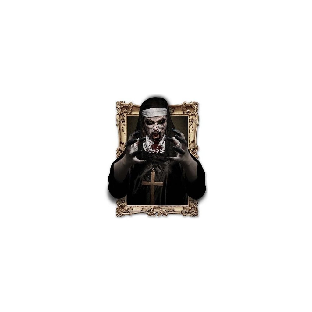 Halloweenská dekorace na zeď - zombie jeptiška. Hodí se na Halloweenský večer nebo hororovou party. Děsivý doplněk na každé Halloweenské party, nebo tématické party. Strašidelná dekorace v podobě samolepící folie, kterou lze umístit na hladký povrch. Jednoduše nalepte folii na hladký povrch, efekt je děsivý! Folie se dá jednoduše odstranit. Rozměr: 70 x 80 cm Balení: 1 ksDoplňkové parametry