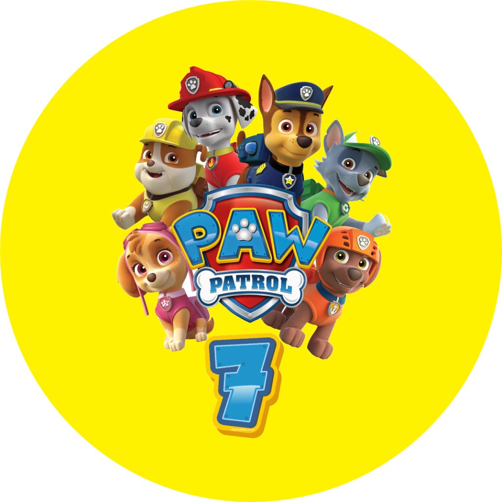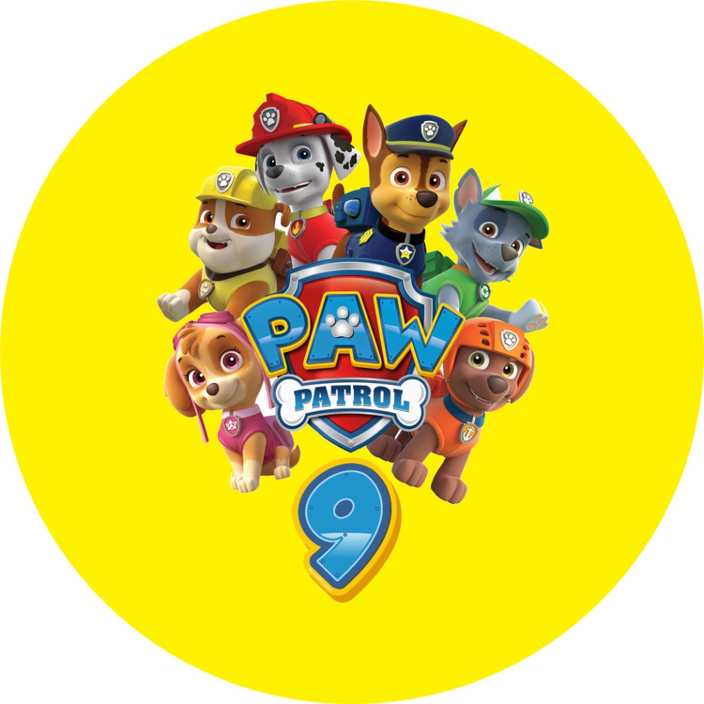 Jedlý papír - obrázek na dort - s číslicí 1-9: PAW PATROL - ŽLUTÝ