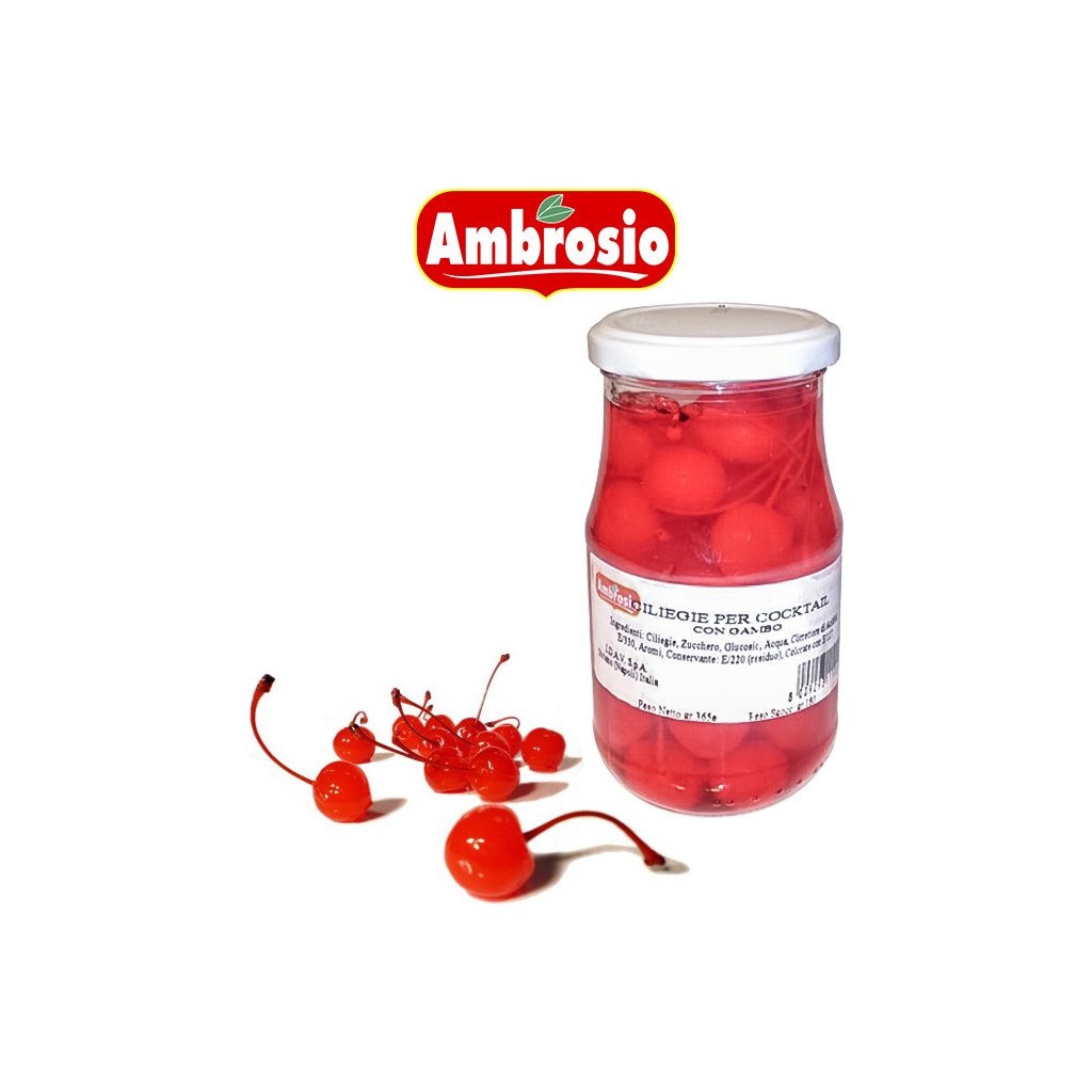 Koktejlové třešně v marasku (se stopkou) 365 g/sklo, pevný podíl 180 g