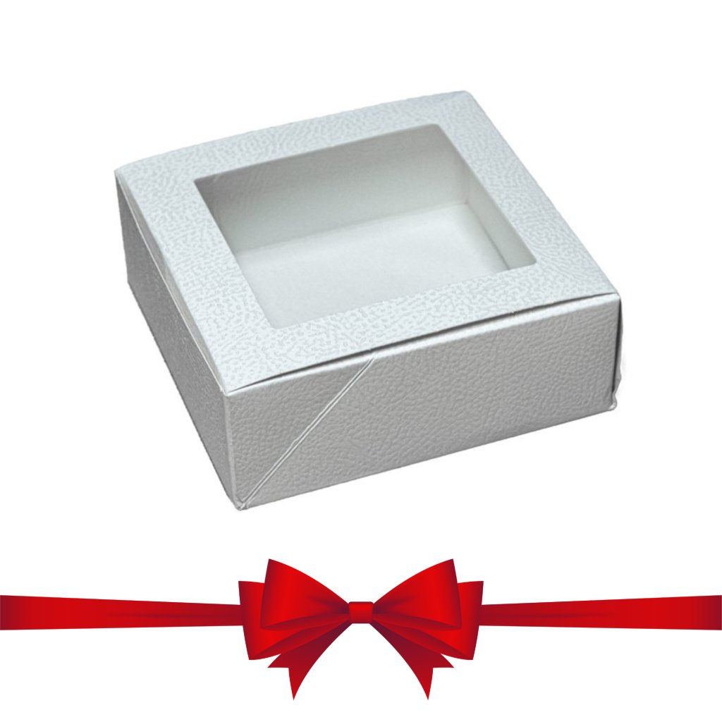 Krabice na cukroví s průhledem 160x160,v.60mm (imitace kůže - bílá)