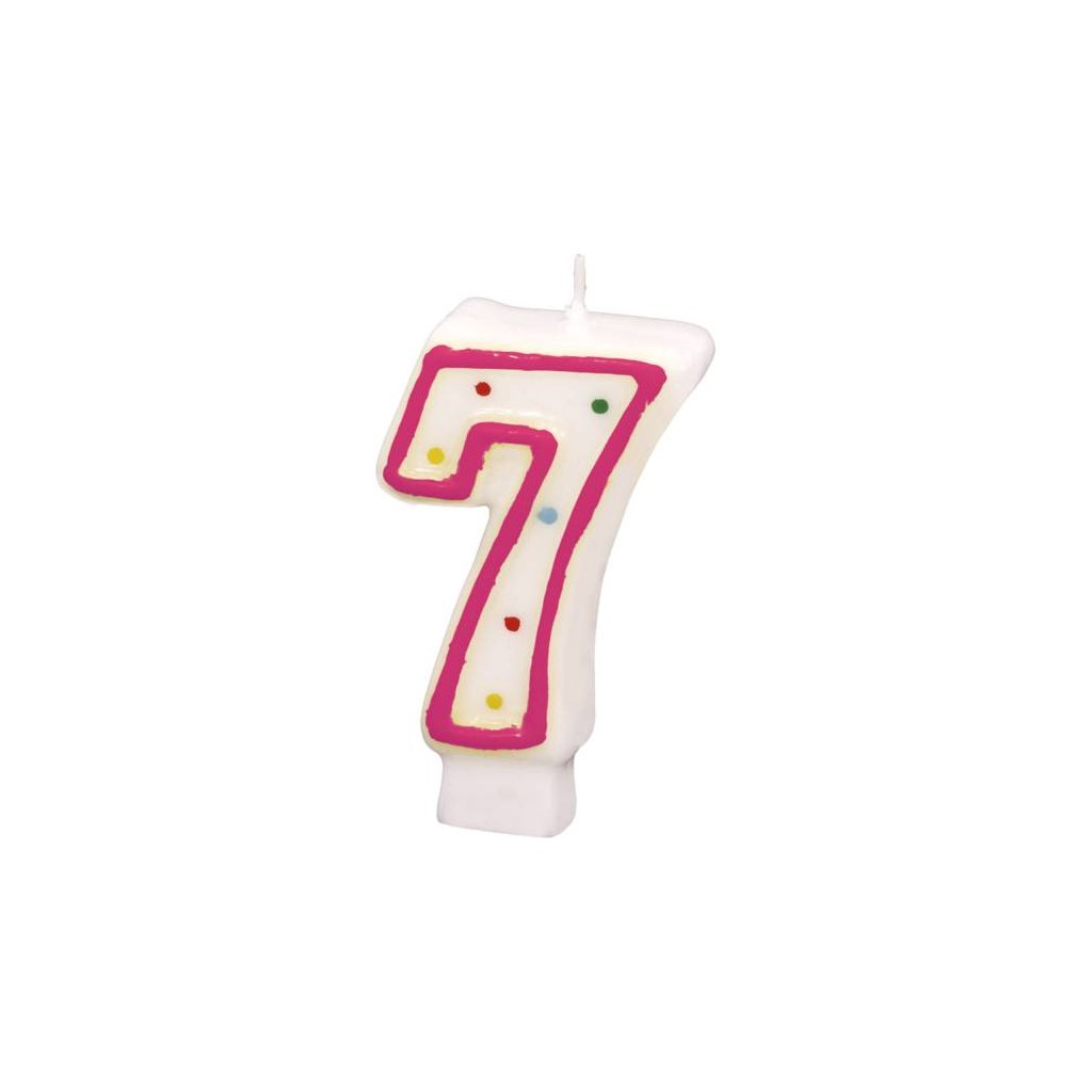 Narozeninová svíčka ve tvaru číslice 7 s puntíky. Výška 7,3 cm.Doplňkové parametry