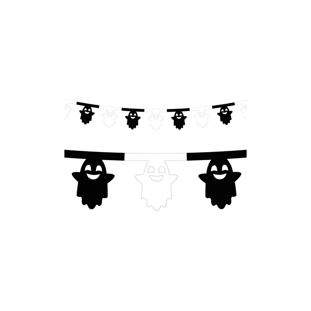 Papírová girlanda duchové v bílé a černé barvě, vhodná na zavěšení při halloweenské akci. Rozměr: 3,6 m Materiál: papírDoplňkové parametry