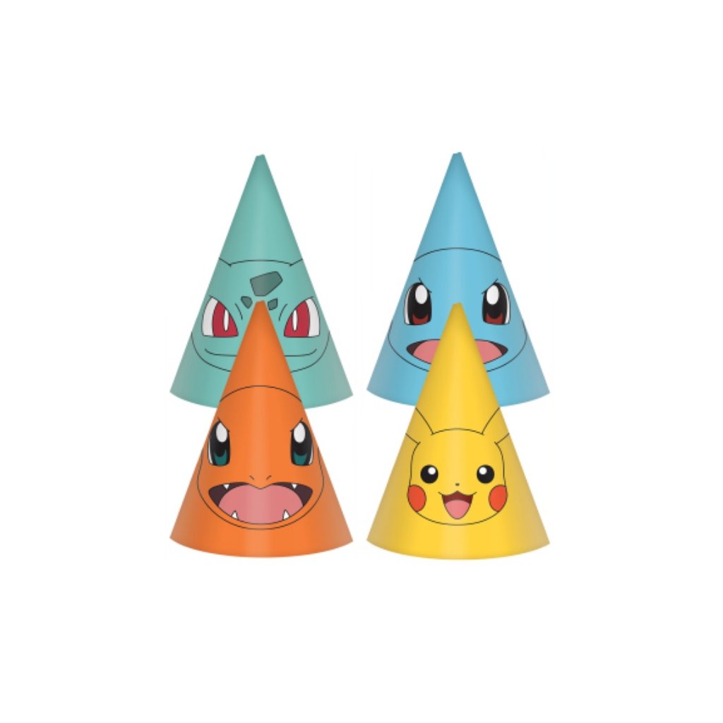 Papírové čepičky s obrázky oblíbených hrdinů seriálu Pokemon jako jsou Pikachu, Charmander, Bulbasaur nebo Squirtle. Hodí se na oslavu narozenin tematickou party nebo karneval. Rozměr: 16 cm. Balení: 8 ks.Doplňkové parametry