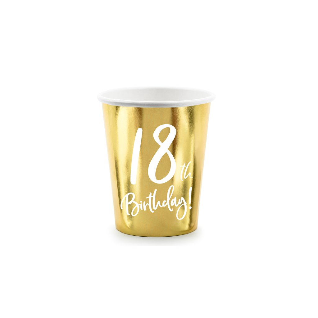 Papírové kelímky zlaté narozeninové 18 let - 220ml 6ks - PartyDeco | Cukrářské potřeby